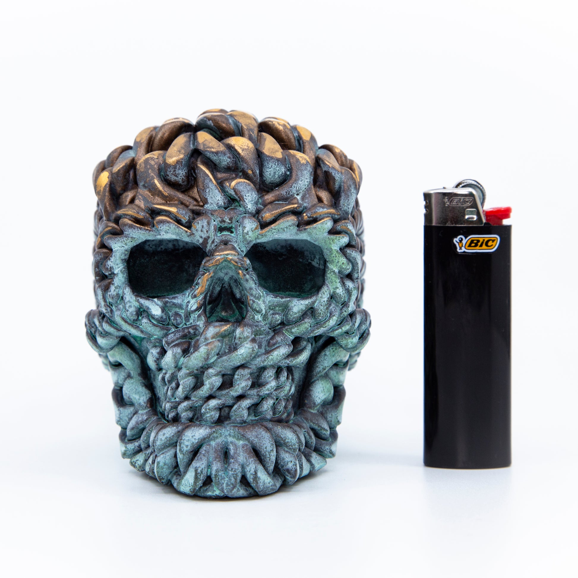3D modeled & printed (resin), painted with bronze and/or copper paint & patina'd by Freehand Profit himself.